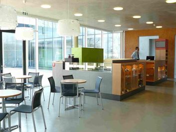 Das Café bietet zu den Öffnungszeiten auch ohne Museumseintritt warme und kalte Getränke sowie Süßgebäck.