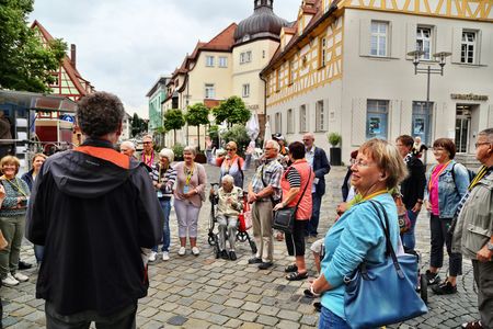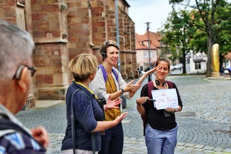 Dabei wurde etwa eine mobile FM-Anlage und zwei Gebärdensprachdolmetscherinnen eingesetzt – letztere gefördert durch die Integrationsstiftung Schwabach. Die FM-Anlage überträgt per Funk die Informationen der Kunsthistorikerin auf Audio-Kopfhörer oder direkt in das Hörgerät mittels