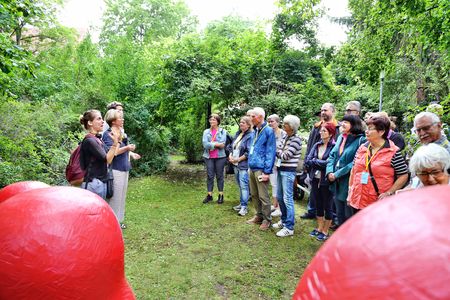 Der Leiterin des Kulturamtes, Sandra Hoffmann-Rivero, dem Runden Tisch Inklusion und der Inklusionsbeauftragten der Stadt, Sabine Reek-Rade, war es ein besonderes Anliegen, dass auch Menschen mit eingeschränkter Sinneswahrnehmung oder Mobilität ortung 11. erleben konnten. In Kooperation mit dem städtischen Kulturamt, Martin Thanner von der Koordinierungsstelle für Senioren mit Höreinschränkungen und der Kunsthistorikerin Kerstin Bienert, wurden deshalb Führungen für Menschen mit Mobilitätseinschränkung, Hörminderung oder Gehörlosigkeit angeboten.