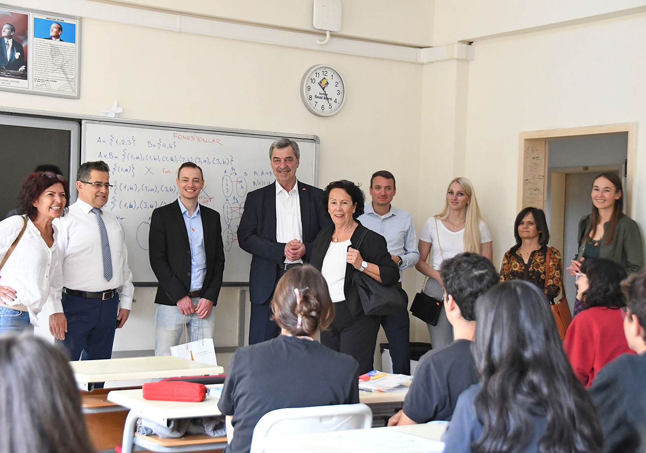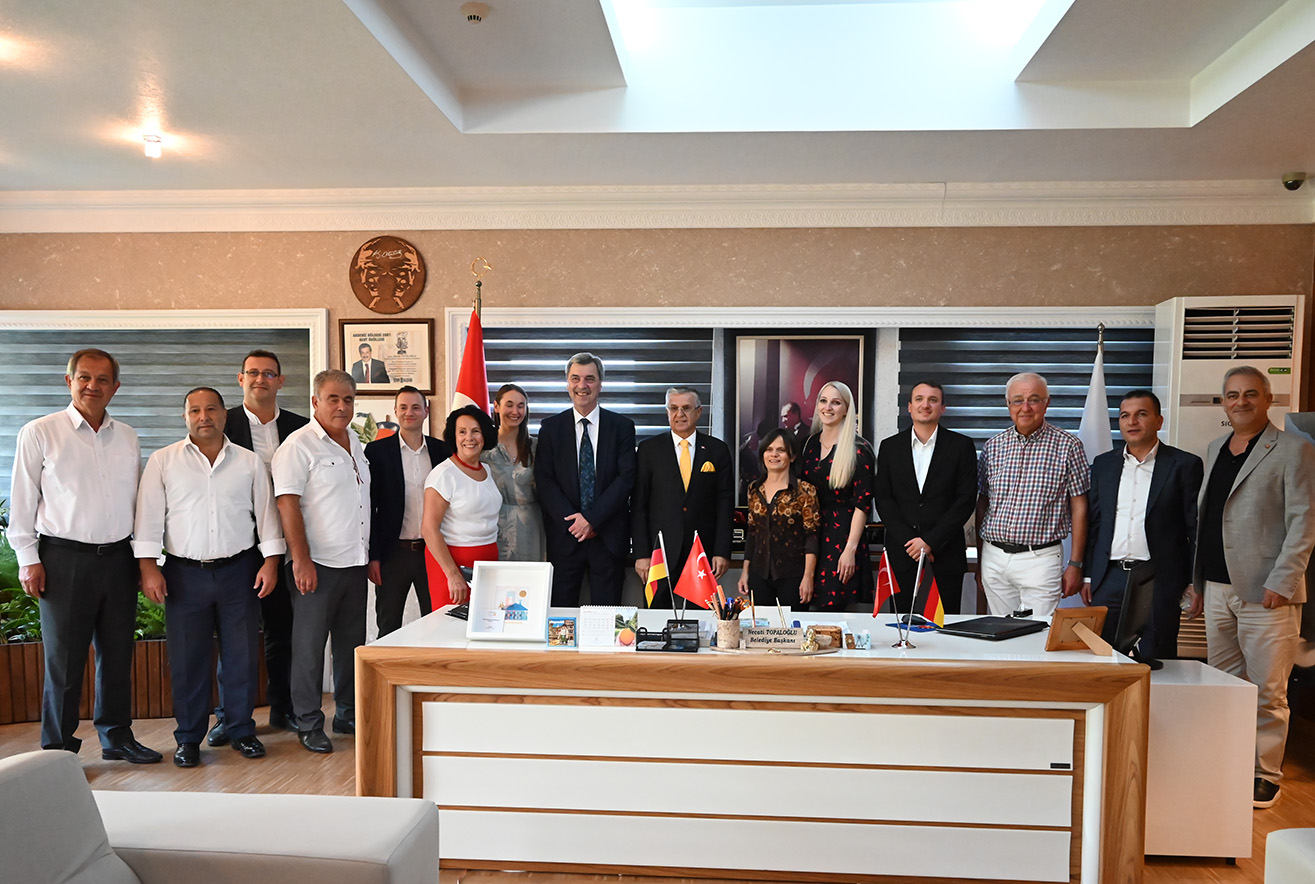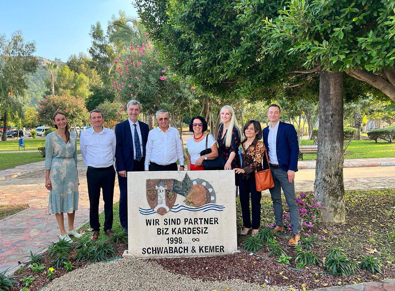 Mitte Januar besuchten Necati Topaloğlu, Bürgermeister der Schwabacher Partnerstadt Kemer und Alt-Bürgermeister Hasan Şeker und dessen Frau die Goldschlägerstadt. Ende Oktober trat eine siebenköpfige Delegation aus Schwabach den Gegenbesuch in die Türkei an. Beide Städte möchten den Austausch miteinander in den Bereichen Bildung, Sport, Jugend, Klimaschutz und Nachhaltigkeit stärken. In Begleitung der Komitee-Vorsitzenden Ayşe Biyik reisten Bürgermeister Emil Heinlein, Umweltreferent Dr. Maximilian Hartl, Stadtratsmitglied Magdalena Reiß, die Sachgebietsleiterin der kommunalen Jugendarbeit Susanna Regelsberger-Sacco, der strategische Koordinator für Schulen und Sport Dr. Manuel Kronschnabel und die Koordinatorin kommunaler Entwicklungspolitik Anna Spaulding dafür nach Kemer.